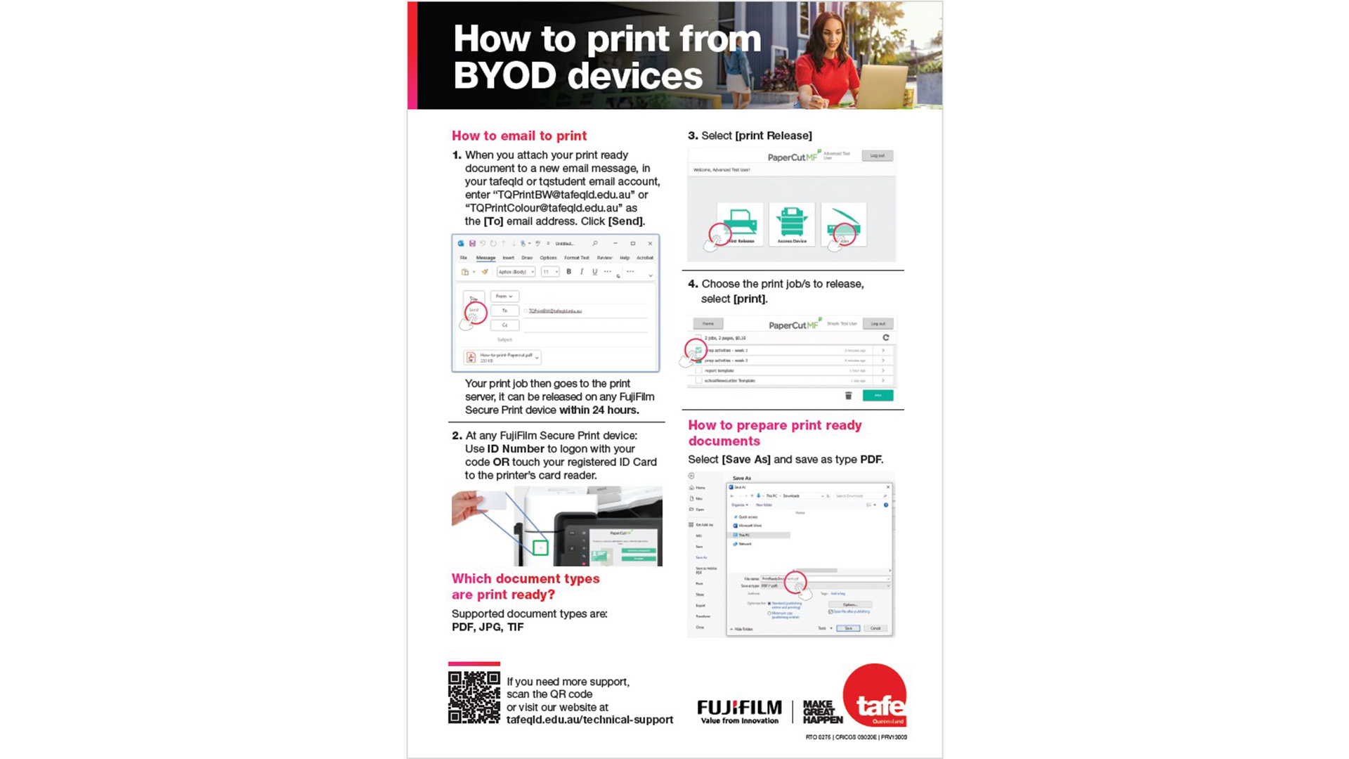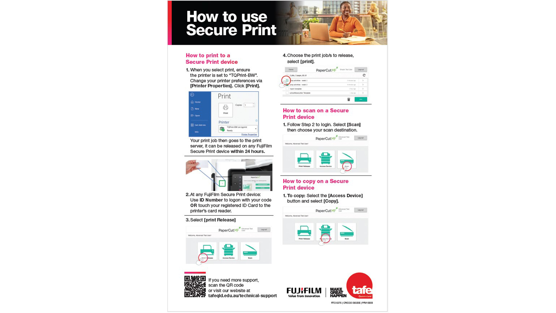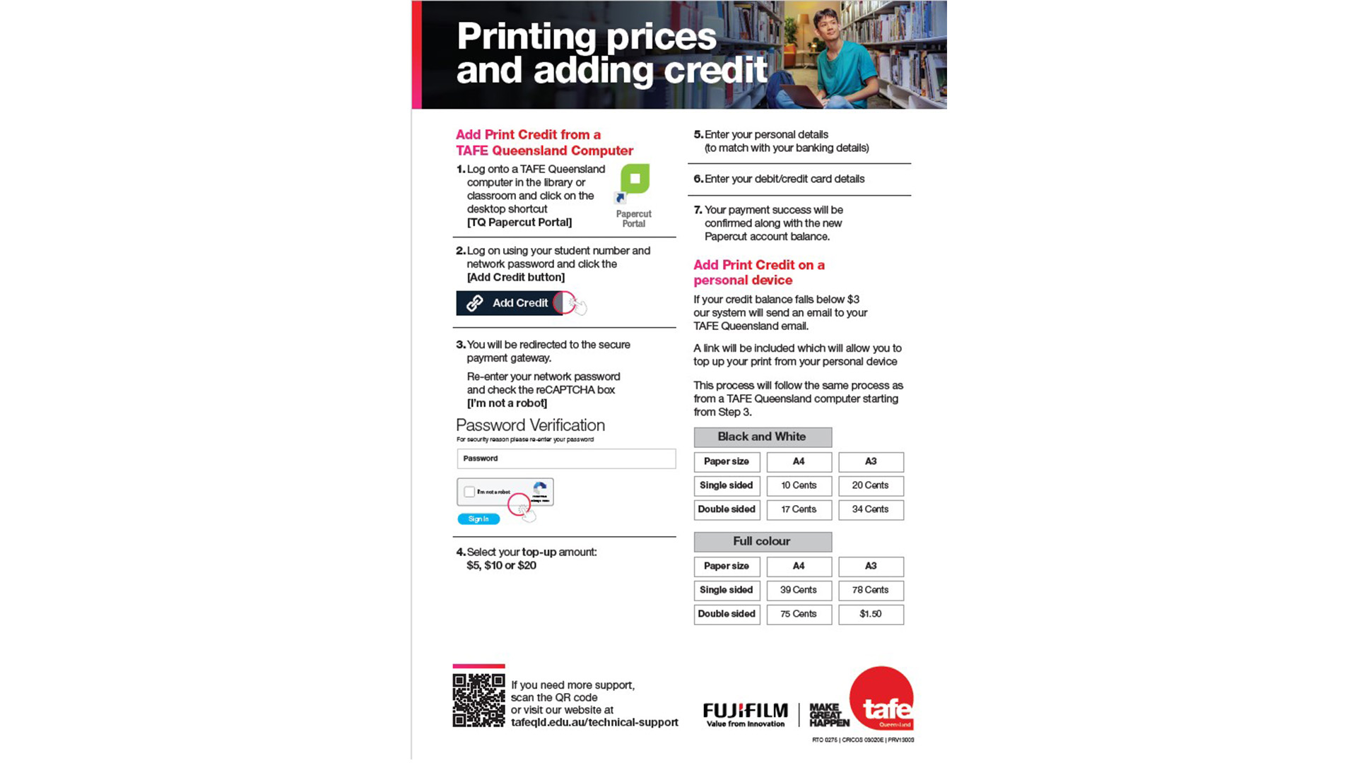 Printing and associated costs are the same across all TAFE Queensland campuses.
