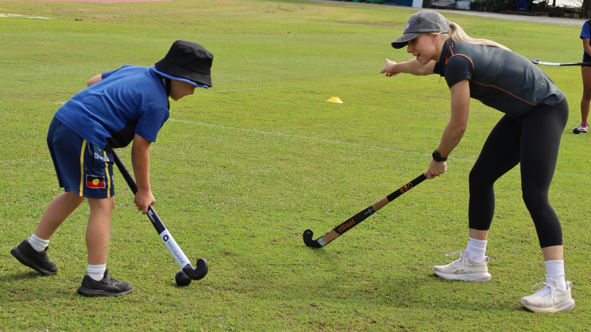 But this time, it wasn’t just elite athletes leading the way. TAFE Queensland students enrolled in the Hockey Queensland Certificate II in Sport Coaching (SIS20321) program stepped up to play a key role in delivering the sessions, putting their new skills into practice in a real coaching environment.